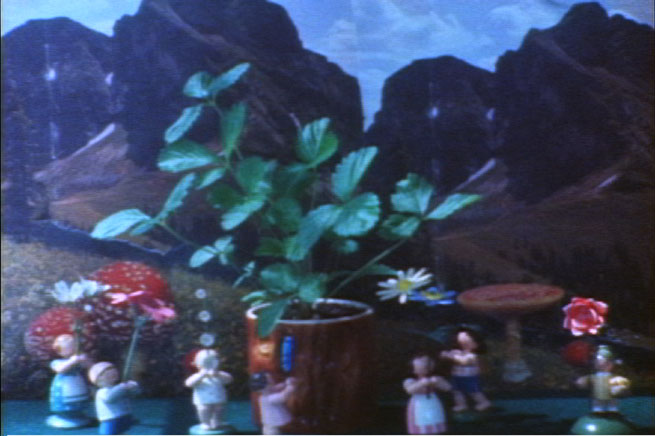 Garlands is T. J. Wilcox's new group of 16 short, silent films installed on six 16 mm projectors. Each film relates an everyday phenomenon or anecdotal event that is told in the artist's signature means of reductive poetic narrative using original footage, still photographs, animation and one line subtitles. The projectors' collective hum provides the only sound for the exhibition.